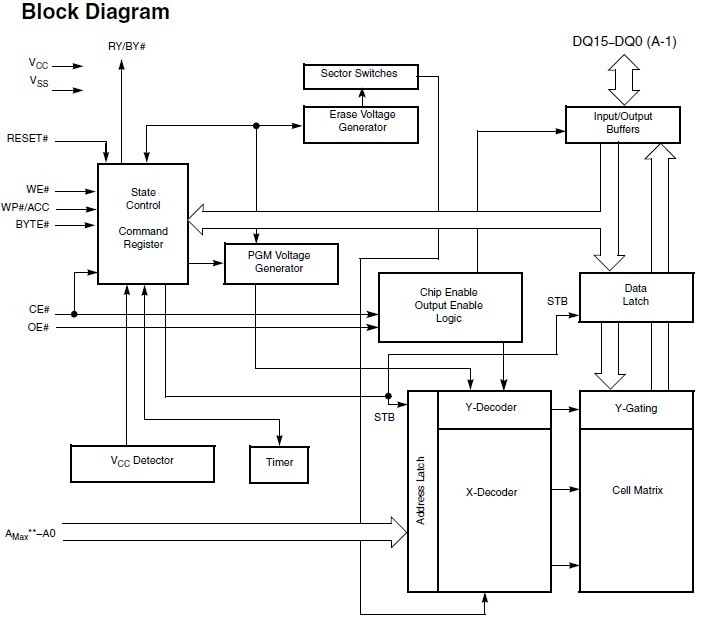 Features: (1)Software features: Advanced Sector Protection: offers Persistent Sector Protection and Password Sector Protection; Program Suspend & Resume: read other sectors before programming operation is completed; Erase Suspend & Resume: read/program other sectors before an erase operation is completed; Data# polling & toggle bits provide status; CFI (Common Flash Interface) compliant: allows host system to identify and accommodate multiple flash devices; Unlock Bypass Program command reduces overall multiple-word programming time; (2)Hardware features: WP#/ACC input accelerates programming time (when high voltage is applied) for greater throughput during system production. Protects first or last sector regardless of sector protection settings on uniform sector models; Hardware reset input (RESET#) resets device; Ready/Busy# output (RY/BY#) detects program or erase cycle completion.